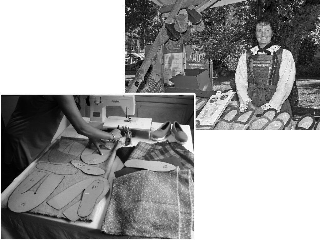 Unsere Filzpantoffeln, Gästepantoffeln und Einlegesohlen werden in unserem Familienbetrieb in Mühlbach/Südtirol (Italien) nach traditioneller Südtiroler Handwerkskunst und mit viel Liebe zum Detail in Handarbeit gefertigt.
